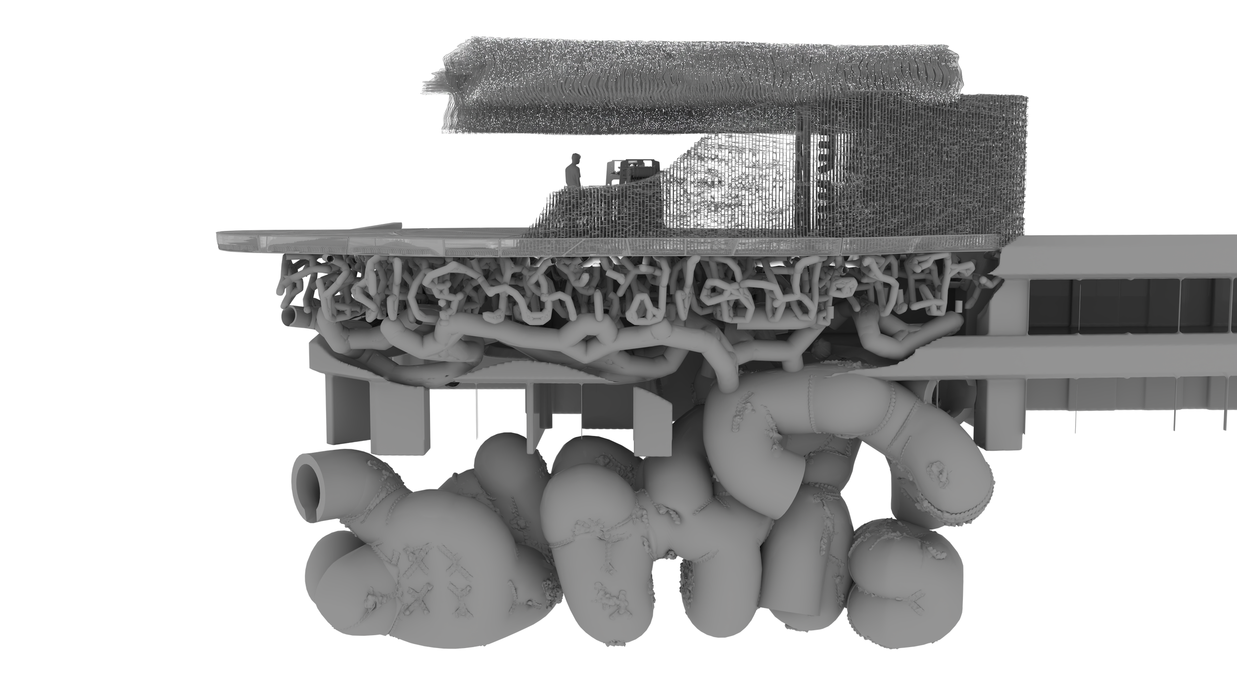 Weaving as the earliest Guild system is used as a catalyst for a series of formal investigations that use technical and craft parameters to define a new intricate topology that shifts in scale between the infrastructural, structural and non-structural. Material gradients are used as design triggers to create spaces that calibrate to Architectural criteria.